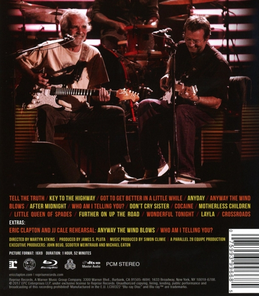 Beschreibung:Executive-Producer: John Beug, Executive-Producer: Michael Eaton, Executive-Producer: Stephen Weintraub, Film Director [Directed By]: Martyn Atkins, Film Producer: James Pluta, Producer [Music]: Simon Climie, Written-By: Bobby Whitlock, Written-By: Eric Clapton, Written-By: Big Bill Broonzy, Written-By: Charles Segar, Written-By: Eric Clapton, Written-By: Bobby Whitlock, Written-By: Eric Clapton, Written-By: J.J. Cale, Written-By: J.J. Cale, Written-By: J.J. Cale, Written-By: J.J. Cale, Written-By: J.J. Cale, Arranged By: Carl Radle, Arranged By: Eric Clapton, Written-By: Traditional, Written-By: Robert Johnson, Written-By: Don Robey, Written-By: Joe Veasey, Written-By: Eric Clapton, Written-By: Eric Clapton, Written-By: Jim Gordon, Guitar, Vocals: Robert Cray, Written-By: Robert Johnson, Written-By: J.J. Cale, Written-By: J.J. Cale, Labelcode 7599399668 (none), Filmed At iPayOne Center, San Diego