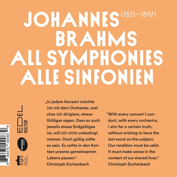 | | Beschreibung: | For this extensive four-album set, which includes a brilliant descriptive booklet, Christoph Eschenbach and his Konzerthausorchester Berlin with their take on Brahms' four symphonies. Christoph Eschenbach is in demand as a distinguished guest conductor with the finest orchestras and opera houses throughout the world, including those in Vienna, Berlin, Paris, London, New York, Boston, Chicago, Los Angeles, Milan, Rome, Munich, Dresden, Leipzig, Madrid, Tokyo, and Shanghai. Mr. Eschenbach is currently principal conductor of the Konzerthaus Orchestra Berlin. In June 2017 he received the title of conductor laureate of the National Symphony Orchestra after having served as music director (2010-17). He was also music director of the Orchestre de Paris (2000-10), The Philadelphia Orchestra (2003-08), NDR Symphony Orchestra (1998-2004), and Houston Symphony (1988-99). Mr. Eschenbach's many honors include the French distinctions of Légion d'Honneur, Officier dans l'Ordre National du Mérite, and Commandeur dans l'Ordre des Arts et des Lettres. He also carries the Commander's Cross of German Order of Merit and the Leonard Bernstein Award from the Pacific Music Festival. In 2015 he received the prestigious Ernst von Siemens Music Award in honor of his life's dedication to music., Runningtime: 00:00:00, Booklet Editor [Textredaktion]: Annette Zerpner, Composed By: Johannes Brahms, Conductor: Christoph Eschenbach, Engineer [Live Sound Engineer]: Johannes Müller (2), Engineer [Recording Engineer]: Johannes Müller (2), Executive-Producer [Edel]: Marcus Heinicke, Executive-Producer [Konzerthaus Berlin]: Ulf Werner (2), Interviewee: Christoph Eschenbach, Interviewer: Arnt Cobbers, Leader [Leader Of The Orchestra]: Suyoen Kim, Liner Notes: Bertrand Chatenet (2), Liner Notes: Christoph Eschenbach, Liner Notes: Friedemann Ludwig, Liner Notes: Michaela Kuntz, Liner Notes: Ralf Forster, Liner Notes: Suyoen Kim, Liner Notes [Translation]: J & M Berridge, Orchestra: Konzerthausorchester Berlin, Photography By [Photos Architektur]: Felix Löchner, Photography By [Photos Eschenbach]: Marco Borggreve, Producer [Recording Producer], Engineer [Balance Engineer], Edited By [Digital Editing]: Musikproduktion Stephan Reh, Product Manager: Maximilian Sieghardt, Soloist, Clarinet [Principal Clarinet], Advisor [Artistic Advisory Committee]: Ralf Forster, Soloist, Horn [Principal Horn]: Bertrand Chatenet (2), Soloist, Oboe [Principal Oboe]: Michaela Kuntz, Soloist, Violoncello [Principal Cello]: Friedemann Ludwig, Labelcode BLN302083.2 (0302083BC, 0302083BC), Phonographic Copyright (p) Berlin Classics, Phonographic Copyright (p) Edel Germany GmbH, Copyright (c) Berlin Classics, Copyright (c) Edel Germany GmbH, Recorded At Konzerthaus Berlin, Manufactured By Optimal Media GmbH, Manufactured By Optimal Media GmbH, Manufactured By Optimal Media GmbH, Manufactured By Optimal Media GmbH, Printed By Optimal Media GmbH |  | | Herstellernummer: |