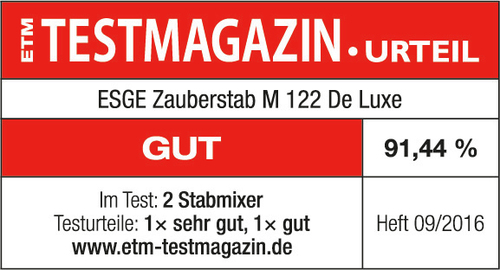 Der ESGE-Zauberstab M 122 de Luxe von Esge - Zauberstab ist ein hochwertiger Stabmixer für anspruchsvolle Hobbyköche und Profis gleichermaßen ? bekannt für Vielseitigkeit und Zuverlässigkeit im Küchenalltag. Ausgestattet mit einem leistungsstarken Schweizer AC-Motor mit 120 Watt bietet das Gerät zwei Geschwindigkeitsstufen (7'000/10'000 U/min) zum Mixen, Pürieren oder Schlagen verschiedenster Zutaten direkt im Topf oder Becher ohne Spritzen. Der Edelstahl-Mixfuß sowie die Aufsätze sind langlebig und leicht zu reinigen; der ergonomische Griff sorgt zusammen mit dem geringen Gewicht (ca. 940g) für komfortable Handhabung auch bei längeren Einsätzen. Im Lieferumfang enthalten sind verschiedene Zubehörteile wie Multifunktionsmesseraufsatz, Schlagscheibe sowie ein Mixbecher mit Deckel (0,5l), Wandhalterung und Rezeptheft ? perfekt geeignet zur Zubereitung von Suppen über Saucen bis hin zu cremigen Desserts oder Smoothies. Seit seiner Gründung im Jahr 1954 steht Esge - Zauberstab aus der Schweiz für Präzisionstechnik ?Made in Switzerland? und Langlebigkeit seiner Produkte ? verbunden mit nachhaltigem Wirtschaften: Die Produktion nutzt erneuerbare Energien; Ersatzteile werden langfristig bereitgestellt um Ressourcen zu schonen; Verpackungen bestehen überwiegend aus recycelbaren Materialien. Mit dem Kauf des ESGE-Zauberstabs leisten Sie nicht nur einen Beitrag zu Ihrer eigenen Kücheneffizienz sondern unterstützen aktiv Umwelt- und Ressourcenschutz durch bewussten Konsum ? Ihr persönlicher Beitrag zum Guten!