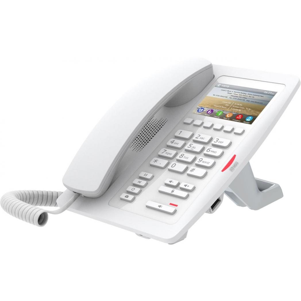 -Built-in 2.4G Wi-Fi for IEEE 802.11b/g/n -3.5inch color screen showing hotel information -2 SIP lines, SIP hotspot -USB Charging Port -Dual Network ports, PoE -Hardware Video decoding (H.264,1080P) -6 Programmable Keys -Call / message indicator lamp x1 - Handsfree indicator lamp