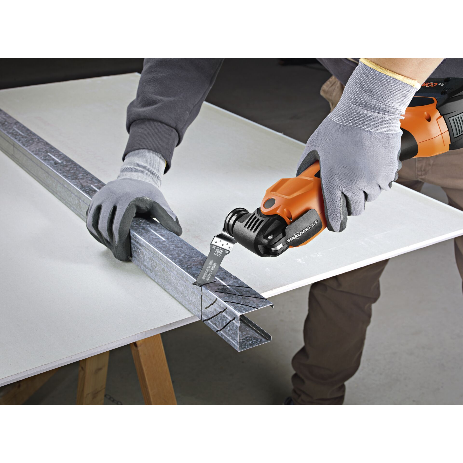 Beschreibung:Bi-Metall mit gewellter Universalverzahnung. Breites Anwendungsspektrum für Blech bis 2 mm, Alu-Profile, Cu-Rohre, Holz, Gipskarton und Kunststoffe. Breite, taillierte Form für optimale Schnittgeschwindigkeit und gute Spanabfuhr. Hauptmerkmale Merkmale Für Materialien geeignet Aluminium, Kupfer, Leitung, Kunststoff, Holz Produktfarbe Schwarz, Edelstahl Leistungen Arbeitslänge 5,5 cm Lieferumfang Menge pro Packung 1 Stück(e)