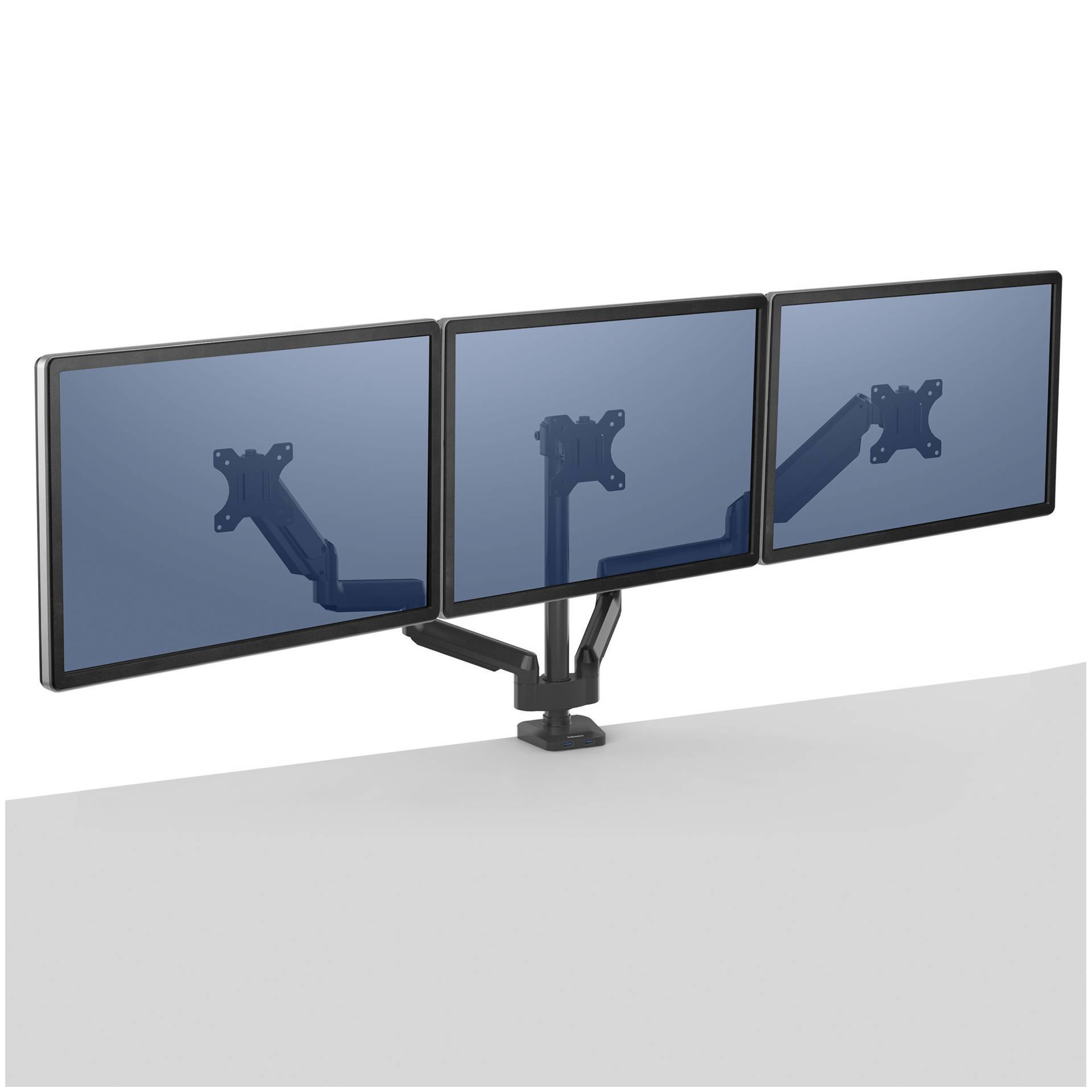 | Allgemeine Daten | | Farbe | schwarz | | Ergonomie | | Drehwinkel (°) | 360 | | Drehbar (links/rechts) | Ja | | Neigungswinkel (°) | +/- 45 | | Neigbar (vor/zurück) | Ja | | Montage | | Max. Traglast (kg) | 3x 7 | | Max. Bildschirmdiagonale (Zoll) | 27 | | Max. Bildschirmdiagonale (cm) | 68,5 | | Typ(en) | | Typ(en) | Monitorarm |