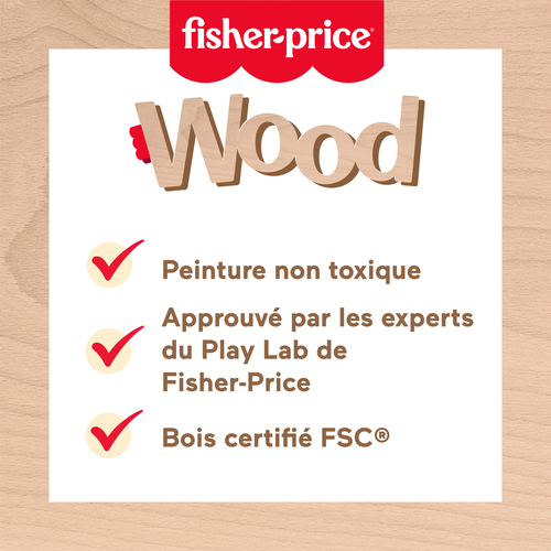 Fisher-Price ist ein weltweit bekannter Hersteller von Kinderspielzeug mit Schwerpunkt auf frühkindlicher Entwicklung, altersgerechtem Design und umfassender Produktsicherheit. Die Marke steht für Spielideen, die Kinder in ihrer Entwicklung unterstützen und gleichzeitig den Alltag von Familien erleichtern. Produkte werden umfangreichen Tests unterzogen, um Sicherheit und Alltagstauglichkeit sicherzustellen. Wo Fisher-Price auf Holz und andere robuste Materialien setzt, spiegelt dies einen Fokus auf Beständigkeit und lang nutzbare Spielangebote wider.