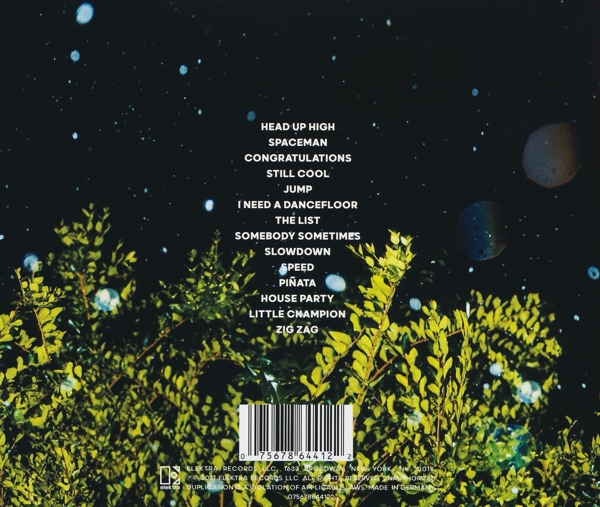 01. "Head up high" 02. "Spaceman" 03. "Congratulations" 04. "Still cool" 05. "Jump" 06. "I need a dancefloor" 07. "The list" 08. "Somebody sometimes" 09. "Slowdown" 10. "Speed" 11. "Pi¤ata" 12. "House party" 13. "Little champion" 14. "Zig zag"