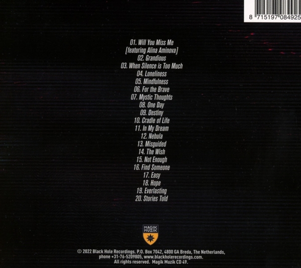 01. Fonzerelli / Aminova, Alina "Will you miss me" 02. Fonzerelli "Grandious" 03. Fonzerelli "When silence is too much" 04. Fonzerelli "Loneliness" 05. Fonzerelli "Mindfulness" 06. Fonzerelli "For the brave" 07. Fonzerelli "Mystic thoughts" 08. Fonzerelli "One day" 09. Fonzerelli "Destiny" 10. Fonzerelli "Cradle of life" 11. Fonzerelli "In my dream" 12. Fonzerelli "Nebula" 13. Fonzerelli "Misguided" 14. Fonzerelli "The wish" 15. Fonzerelli "Not enough" 16. Fonzerelli "Find someone" 17. Fonzerelli "Easy" 18. Fonzerelli "Hope" 19. Fonzerelli "Everlasting" 20. Fonzerelli "Stories told"