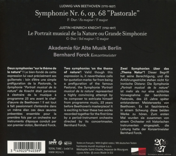 Runningtime: 00:00:00, Concertmaster: Bernhard Forck, Orchestra: Akademie Für Alte Musik Berlin, Composed By: Justin Heinrich Knecht, Composed By: Ludwig van Beethoven, Labelcode HMM 902425, Phonographic Copyright (p) Harmonia Mundi