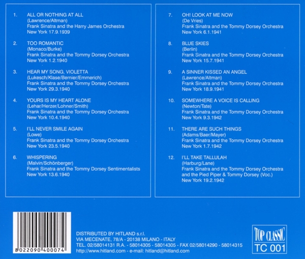 01. "All Or Nothing At All" 02. "Too Romantic" 03. "Hear My Song Violetta" 04. "Yours Is My Heart Alone" 05. "I'll Never Smile Again" 06. "Whispering" 07. "Oh! Look at me now" 08. "Blue Skies" 09. "A sinner kissed an angel" 10. "Somewhere A Voice Is Calling" 11. "There Are Such Things" 12. "I'll Take Tallulah"