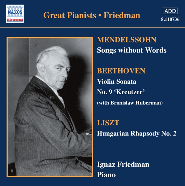 01. "Lieder ohne Worte (Songs without Words), Book 1, Op. 19b: Op. 19, No. 3 in A major" 02. "Lieder ohne Worte (Songs without Words), Book 1, Op. 19b: Op. 19, No. 6 in G minor" 03. "Lieder ohne Worte (Songs without Words), Book 1, Op. 19b: Op. 102, No. 5 in A major" 04. "Lieder ohne Worte (Songs without Words), Book 1, Op. 19b: Op. 30, No. 6 in F sharp minor" 05. "Lieder ohne Worte (Songs without Words), Book 1, Op. 19b: Op. 38, No. 2 in C minor" 06. "Lieder ohne Worte (Songs without Words), Book 1, Op. 19b: Op. 38, No. 6 in A flat major" 07. "Lieder ohne Worte (Songs without Words), Book 1, Op. 19b: Op. 53, No. 2 in E flat major" 08. "Lieder ohne Worte (Songs without Words), Book 1, Op. 19b: Op. 53, No. 4 in F major" 09. "Lieder ohne Worte (Songs without Words), Book 1, Op. 19b: Op. 67, No. 2 in F sharp minor" 10. "Violin Sonata No. 9 in A major, Op. 47, "Kreutzer": I. Adagio sostenuto: Presto" 11. "Violin Sonata No. 9 in A major, Op. 47, "Kreutzer": II. Adante and Variations" 12. "Violin Sonata No. 9 in A major, Op. 47, "Kreutzer": III. Finale: Presto" 13. "Violin Sonata No. 9 in A major, Op. 47, "Kreutzer": IV. Adagio sostenuto: Presto (alternative take)" 14. "19 Hungarian Rhapsodies, S244/R106: No. 2 in C sharp minor"