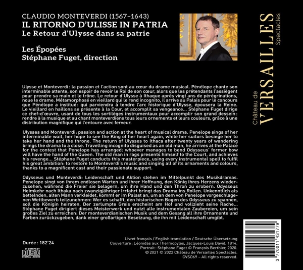 | | Beschreibung: | Ulysses and Monteverdi: passion and action at the heart of musical drama. Penelope sings of her endless wait, her hope to see the king of her heart again, while her suitors besiege her to take her hand and the throne. The return of Ulysses to Ithaca after twenty years of wandering brings the drama to a close. Travelling incognito disguised as an old man, he arrives at the palace for the contest that Penelope has arranged: whoever manages to bend Odysseus' former bow will have the hand of the queen. The old man in rags presents himself to the court, and achieves his revenge... Stéphane Fuget conducts this masterpiece, using every instrumental spell to fulfil his great ambition: to restore to Monteverdi's music and singing all of it's ornaments and colors, thanks to a magnificent cast and their passionate support., Runningtime: 00:00:00, Composed By: Claudio Monteverdi, Directed By, Harpsichord: Stéphane Fuget, Libretto By: Giacomo Badoaro, Orchestra: Les Épopées, Recorded By, Edited By, Mastered By: Olivier Rosset (2), Solo Vocal: Alex Rosen (3), Solo Vocal: Ambroisine Bré, Solo Vocal: Cyril Auvity, Solo Vocal: Fabien Hyon, Solo Vocal: Filippo Mineccia, Solo Vocal: Juan Sancho, Solo Vocal: Jörg Schneider (5), Solo Vocal: Lucile Richardot, Solo Vocal: Marie Perbost, Solo Vocal: Marielou Jacquard, Solo Vocal: Pierre Antoine Chaumien, Solo Vocal: Valerio Contaldo, Labelcode CHAV69.2 (CVS069), Phonographic Copyright (p) Château de Versailles Spectacles, Copyright (c) Château de Versailles Spectacles, Recorded At Château de Versailles, Made By Sonopress, Made By Sonopress, Made By Sonopress |  | | Herstellernummer: |