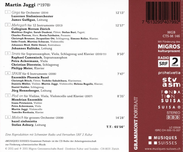 Beschreibung: | Co-producer: Schweizer Radio Und Fernsehen, Composed By: Martin Jaggi, Executive-Producer: Claudio Danuser, Liner Notes: Michael Kunkel, Mastered By, Mixed By: Michaela Wiesbeck, Mixed By: Erwin Bindzus, Mixed By: Moritz Wetter, Photography: Christoph Bösch, Translated By [Liner Notes]: Chris Walton (4), Translated By [Liner Notes]: Jacques Lasserre, Conductor: James Gaffigan, Orchestra: Luzerner Sinfonieorchester, Conductor: Johannes Kalitzke, Ensemble: Collegium Novum Zürich, Drums: Christian Dierstein, Piano: Philipp Meier (2), Soprano Saxophone: Raphael Camenisch, Viola: Petra Ackermann, Conductor: Jürg Henneberger, Ensemble: Ensemble Phoenix Basel, Cello: Martin Jaggi, Ensemble: Mondrian Ensemble, Piano: Tamriko Kordzaia, Viola: Ivana Pristá?ová, Viola: Petra Ackermann, Conductor: Stefan Asbury, Orchestra: Basel Sinfonietta, Labelcode MQS146.2 (MGB CTS-M 146), Phonographic Copyright (p) Migros-Genossenschafts-Bund, Copyright (c) Migros-Genossenschafts-Bund |