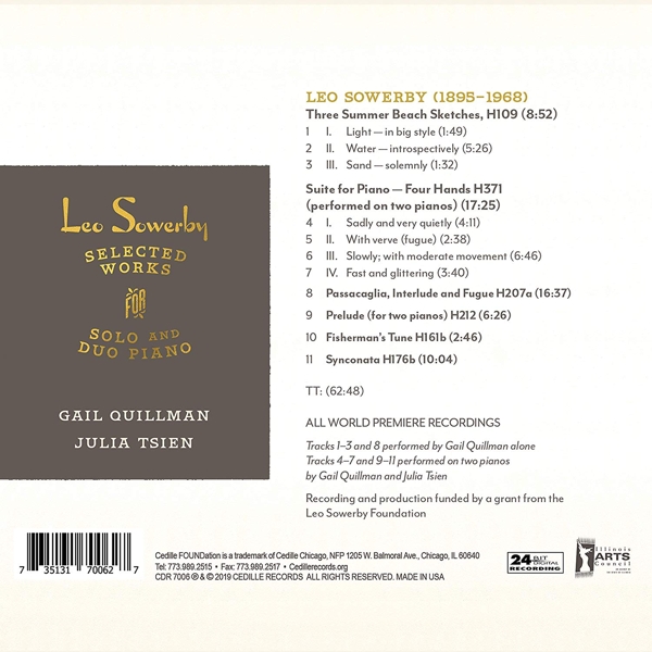 Composed By: Leo Sowerby, Piano: Gail Quillman, Piano: Julia Tsien, Labelcode CED7006.2 (CDR 7006), Phonographic Copyright (p) Cedille Records, Copyright (c) Cedille Records