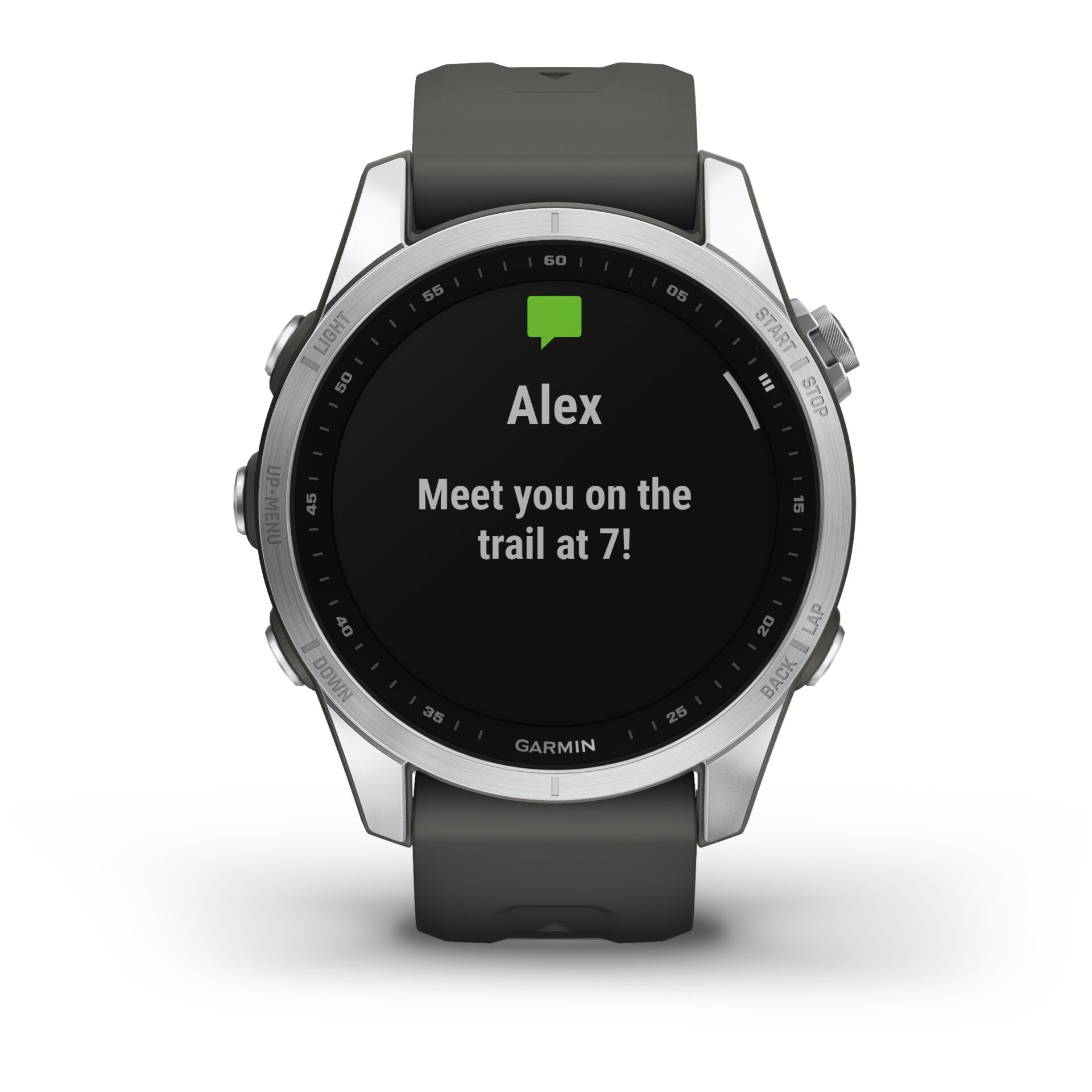 Über die Connect IQ Plattform lässt sich das Nutzererlebnis individuell anpassen; smarte Benachrichtigungen halten Sie unterwegs auf dem Laufenden und Musik kann direkt auf der Uhr gespeichert werden ? ganz ohne Smartphone! Für zusätzliche Sicherheit sorgen Funktionen wie Unfallbenachrichtigung während Aktivitäten.