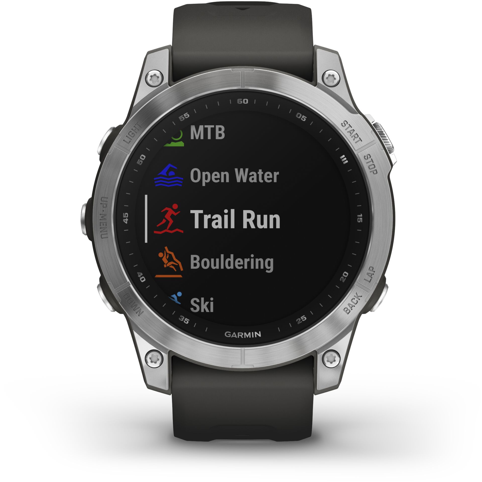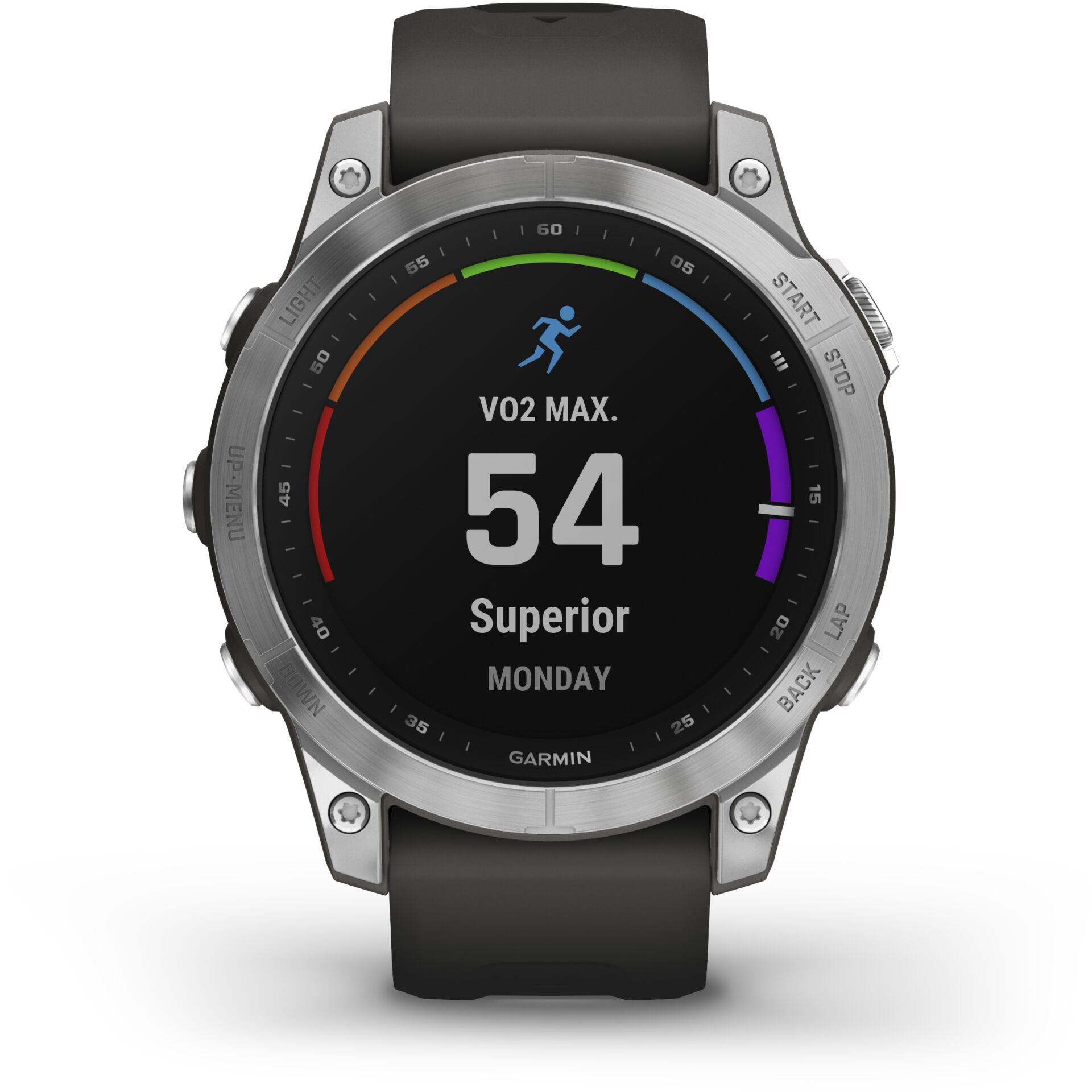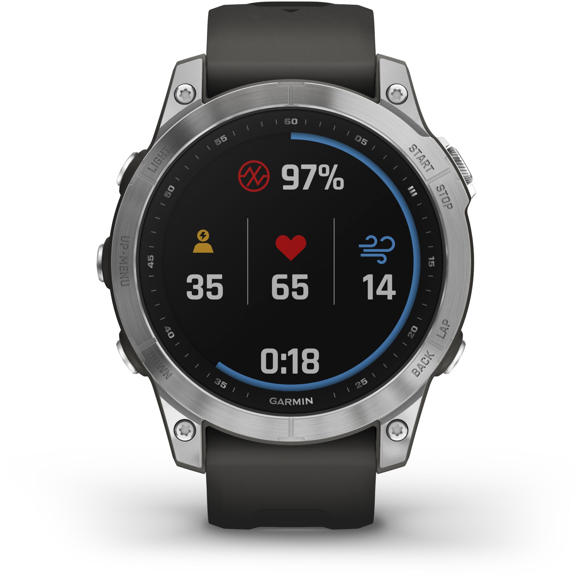Beschreibung:Kurzinfo: Garmin fenix 7 - 47 mm - silber - Sportuhr mit Band - Silikon - Graphit - Handgelenkgröße: 125-208 mm - Anzeige 3.302 cm (1.3") - 16 GB - Bluetooth, Wi-Fi, ANT+ - 79 g Gruppe Tragbare Elektronik Hersteller Garmin Hersteller Art. Nr. 010-02540-01 Modell fenix 7 EAN/UPC 0753759278038 Produktbeschreibung: Garmin fenix 7 - silber - Sportuhr mit Band - Graphit - 16 GB Produkttyp Sportuhr Aktivität/Sport Multisport Verfolgungsdaten Strecke, Geschwindigkeit, verbrannte Kalorien, Aktivität, Schlafverhalten, Herzfrequenz, Schritte, Sauerstoffsättigung des Blutes, Geschwindigkeit, Stressniveau, Atemfrequenz, Zeit aktiv, Wasserhaushalt, Temperatur Konnektivität Bluetooth, Wi-Fi, ANT+ Navigation GPS/GLONASS/Galileo-Empfänger Anzeige Memory-in-Pixel LCD - 3.302 cm (1.3") - 260 x 260 Pixel - Corning Gorilla Glass DX Speicherkapazität 16 GB Gehäuse Rund - 47 mm - rostfreier Stahl, faserverstärktes Polymer Band Graphit - Band - Silikon - austauschbar Zahlungstechnologie Garmin Pay Eingang Touch-Screen,