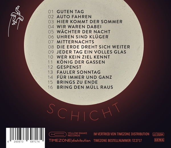 1: Guten Tag () 2: Auto Fahren () 3: Hier Kommt Der Sommer () 4: Wir Waren Dabei () 5: Wächter Der Nacht () 6: Uhren Sind Klüger () 7: Mitternachts () 8: Die Erde Dreht Sich Weiter () 9: Jeder Tag Ein Volles Glas () 10: Wer Kein Ziel Kennt () 11: König Der Gassen () 12: Gespenst () 13: Fauler Sonntag () 14: Für Immer Und Ganz () 15: Brings Zu Ende () 16: Bring Den Müll Raus ()