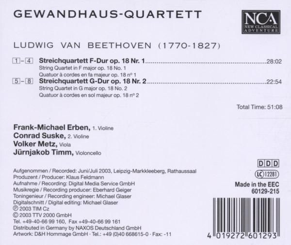 Streichquartett Nr. 1 F-Dur op. 18 Nr. 1 01. "1. Allegro con brio" 02. "2. Adagio affettuoso ed appassionato" 03. "3. Scherzo: Allegro molto" 04. "4. Allegro" Streichquartett Nr. 2 G-Dur op. 18 Nr. 2 05. "1. Allegro" 06. "2. Adagio cantabile" 07. "3. Scherzo: Allegro" 08. "4. Allegro molto, quasi presto"
