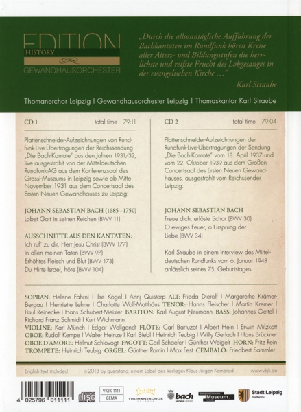 Gewandhausorchester Leipzig/ Thomanerchor/ Straube