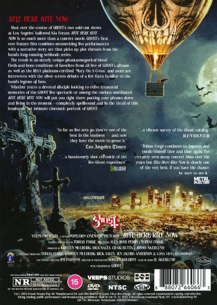 | | Beschreibung: | Ghost - "Rite Here Rite Now" [DVD] After a record-breaking Top 10 worldwide box office performance, an acclaimed global streaming premiere, and a #1 Soundtrack Album, GHOST now releases RITE HERE RITE NOW on DVD, Blu-ray, and 4K. This film blends live performances with cutaway sequences, immersing viewers in GHOST's renowned live rituals. It picks up plot threads from the band's long-running Chapters webisode series, featuring familiar faces interacting behind the scenes with Papa IV, whose future and fate rest with the Ministry. Concord Music Group; Loma Vista Recordings; Rock. Artist Hometown: Linköping, Sweden. [DVD] EXPLICIT, Runningtime: 00:00:00, Labelcode 7266066"Rite Here Rite Now (Ltd. DVD)" ist eine limitierte Sonderausgabe auf DVD vom renommierten Label Concord Records und präsentiert das spektakuläre Live-Erlebnis der schwedischen Rockband Ghost. Der Konzertfilm fängt die einzigartige Bühnenpräsenz und musikalische Vielseitigkeit von Ghost ein ? eine Mischung aus Heavy Metal mit eingängigen Melodien und beeindruckenden visuellen Effekten. Die Band wird angeführt von Frontmann Tobias Forge alias Papa Emeritus IV, dessen charismatisches Auftreten sowie geheimnisvolle Inszenierung weltweit für Furore sorgen. Regie führte Alex Ross Perry ("Her Smell"), der für seine innovativen Musikfilme bekannt ist und dem Konzert einen cineastischen Rahmen verleiht.