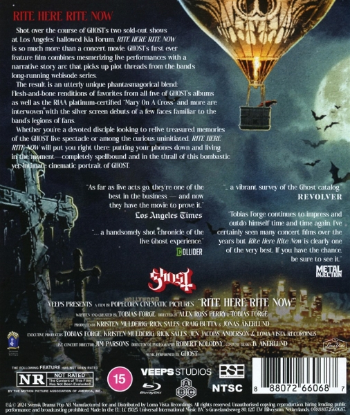 | | Beschreibung: | Ghost - "Rite Here Rite Now" [Blu-ray] After a record-breaking Top 10 worldwide box office performance, an acclaimed global streaming premiere, and a #1 Soundtrack Album, GHOST now releases RITE HERE RITE NOW on DVD, Blu-ray, and 4K. This film blends live performances with cutaway sequences, immersing viewers in GHOST's renowned live rituals. It picks up plot threads from the band's long-running Chapters webisode series, featuring familiar faces interacting behind the scenes with Papa IV, whose future and fate rest with the Ministry. Concord Music Group; Loma Vista Recordings; Rock. Artist Hometown: Linköping, Sweden. [Blu-ray] EXPLICIT, Runningtime: 00:00:00, Labelcode 7266068Erleben Sie die Magie von "Rite Here Rite Now" im hochauflösenden Blu-Ray-Format, präsentiert von Concord Records. Diese limitierte BD50-Disc bietet ein immersives Kinoerlebnis wie kein anderes. Concord Records ist ein renommierter Name in der Musikindustrie und bekannt für seine Verpflichtung zu Qualität und Innovation. Die Besetzung umfasst einige der talentiertesten Schauspieler, die ihr Können mit ihren vorherigen Arbeiten unter Beweis gestellt haben. Die Vision des Regisseurs kombiniert mit den herausragenden Leistungen macht diesen Film zu einem Muss für jeden Filmliebhaber. |  | | Darsteller: |