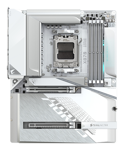 GIGABYTE X870 AORUS STEALTH ICE Mainboard – Unterstützt AMD Ryzen 9000 CPUs, digitales 16+2+2 Phasen VRM, bis zu 8200 MHz DDR5 (OC), 2 x PCIe 5.0 + 2 x PCIe 4.0, Wi-Fi 7, 5 GbE LAN, USB 4
