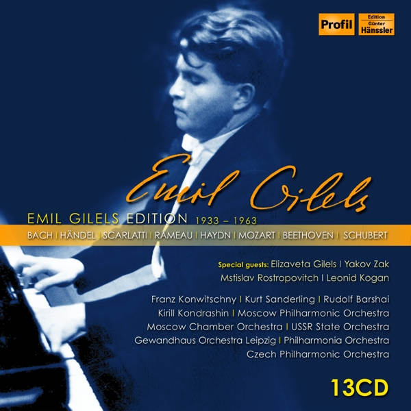 Disc 01 01. Gilels, Emil "Fantasie über Themen aus Figaro und Don Giovanni S 697 (nach Wolfgang A. Mozart) (Auszug)" Suite Nr. 1 02. Gilels, Emil "6. Gigue" Lieder op. 74 Nr. 1-9 (Spanisches Liederspiel) (Auszug) 03. Gilels, Emil "Der Kontrabandiste" 04. Gilels, Emil "Toccata C-Dur op. 7" 05. Gilels, Emil "Fantasie über Themen aus Figaro und Don Giovanni S 697 (nach Wolfgang A. Mozart)" Fantasiestücke op. 12 Nr. 1-8 (In Callots Manier) (Auszug) 06. Gilels, Emil "Nr. 7 Traumes Wirren" Pr?ludes op. 23 Nr. 1-10 (Auszug) 07. Gilels, Emil "Nr. 5 Pr?lude g-moll" 08. Gilels, Emil "Polonaise Nr. 6 As-Dur op. 53 "Heroische"" Trois Pi?ces FP 48 (Auszug) 09. Gilels, Emil "Nr. 1 Pastorale" 10. Gilels, Emil "Nr. 2 Toccata" Nocturnes CD 98 (Auszug) 11. Gilels, Emil "Nr. 2 F?tes" 12. Gilels, Emil "Etüde Nr. 5 E-Dur BVB 76 "La Chasse"" tudes-Tableaux op. 39 Nr. 1-9 (Auszug) 13. Gilels, Emil "Nr. 1 tude-Tableau c-moll" Fantasien op. 16 Nr. 1-3 (Capricen) 14. Gilels, Emil "Nr. 2 Scherzo e-moll (Presto)" Souvenir de Hapsal op. 2 (Auszug) 15. Gilels, Emil "Nr. 3 Lied ohne Worte" Ungarische T?nze Nr. 1-21 (Auszug) 16. Gilels, Emil "Nr. 1 Ungarischer Tanz g-moll (Allegro molto)" 17. Gilels, Emil "Navarra op. posth. (bearb. für 2 Klaviere von Alexander Kamensky)"