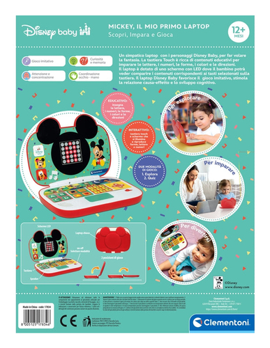 Der Baby Mickey Primo Laptop von Clementoni ist ein interaktives Lernspielzeug für Kinder ab 10 Monaten. Das farbenfrohe Gerät im beliebten Baby-Mickey-Design verfügt über große Tasten und leuchtende Elemente sowie fröhliche Geräuscheffekte zur Förderung der frühkindlichen Entwicklung. Es vermittelt spielerisch erste Zahlen-, Buchstaben-, Formen- und Farberfahrungen sowie Tiernamen und unterstützt so die kognitive Entwicklung und Feinmotorik Ihres Kindes optimal. Dank des robusten Gehäuses mit praktischem Tragegriff eignet sich der Primo Laptop ideal für zuhause oder unterwegs. Der Hersteller Clementoni steht seit Jahren für hochwertige Lernspielzeuge mit höchsten Sicherheitsstandards und legt großen Wert auf Nachhaltigkeit: Verpackungen bestehen aus recycelten Materialien und umweltschonende Produktionsprozesse werden stetig optimiert ? damit leisten Sie beim Kauf einen wertvollen Beitrag zum Umweltschutz und fördern gleichzeitig das Lernen Ihres Kindes.