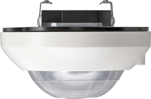 Beschreibung:Präsenzmelder zur Anwesenheitsüberwachung (Betriebsart: Präsenzmelder), zur Bewegungserkennung (Betriebsart: Deckenwächter) oder zur Überwachung durch Meldetelegramme (Betriebsart: Melder) in Innenräumen. Unterputz-Gerät mit integrierter KNX Busankopplung. Programmier-LED/-taste nach Abnahme des Zierrings im eingebauten Zustand sichtbar/bedienbar. PIR-Sensorik: drei Sensoren (gekreuzte Strahlengänge), integrierter Helligkeitssensor. Einsteller zur manuellen Korrektur der Empfindlichkeit. Empfindlichkeit konfigurierbar. Empfindlichkeitseinsteller am Gerät über Software deaktivierbar. Anzeige der Bewegungserfassung (permanent oder nur im Gehtest). Separate Auswertung im Fernbereich der drei PIR-Sensoren mit je 120° Erfassungsfeld mit Überlappung. Handbetätigung durch IR-Fernbedienung. Maximal 5+2 Funktionsblöcke konfigurierbar. Funktionsblöcke 1 bis 5 jeweils einstellbare Funktion: Deckenwächter, Präsenzmelder, Meldebetrieb. Funktionsblock 6: Präsenzmelder mit Lichtregelung. Funktionsblock