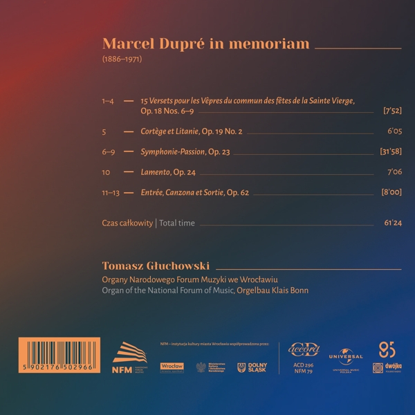 Runningtime: 00:00:00, Composed By: Marcel Dupré, Organ: Tomasz Gluchowski, Labelcode ACD296 (NSM79)