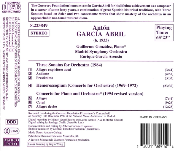 Conductor: Enrique Garcia Asensio, Performer: Orquesta Sinfónica De Madrid, Labelcode MP 8223849 (8.223849)