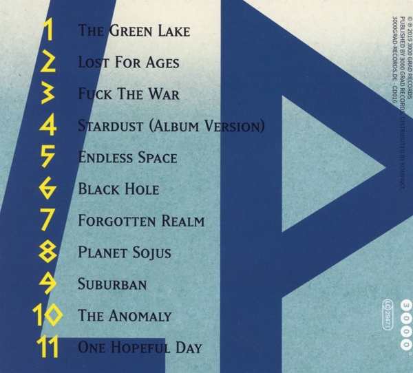 01. "The green lake" 02. "Lost for ages" 03. "Fuck the war" 04. "Stardust (Album Version)" 05. "Endless space" 06. "Black hole" 07. "Forgotten realm" 08. "Planet sojus" 09. "Suburban" 10. "The anomaly" 11. "One hopeful day"