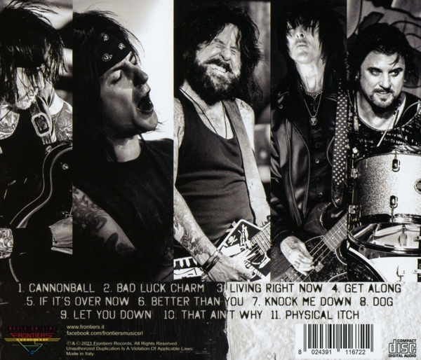 01. "Cannonball" 02. "Bad luck charm" 03. "Living right now" 04. "Get along" 05. "If it's over now" 06. "Better than you" 07. "Knock me down" 08. "Dog" 09. "Let you down" 10. "That ain't why" 11. "Physical itch"