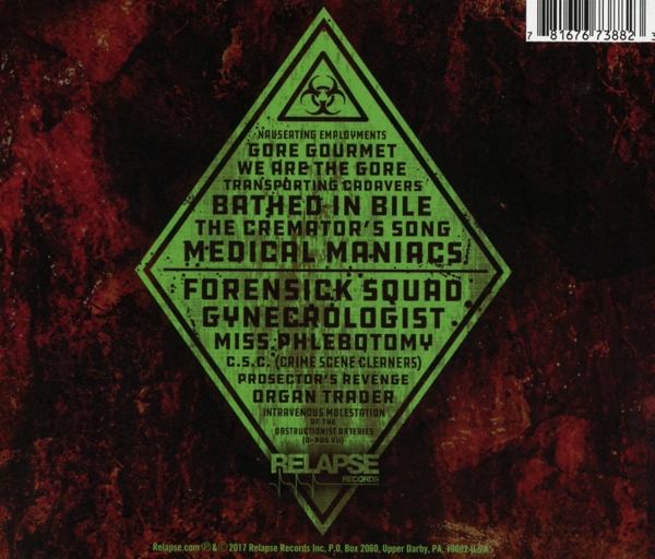 Beschreibung:Artwork [Cover Artwork By]: Luisma, Bass, Backing Vocals: Ramón Checa, Drums: Erik Raya, Engineer [Engineer Assistant]: Alfredo Ustara, Guitar, Backing Vocals: Luisma, Lead Guitar, Backing Vocals: Ana (6), Mastered By: Brad Boatright, Photography By [Pics By]: Miguel Galindo (4), Recorded By, Mixed By: Javier Ustara, Vocals [Maligna Vox]: Lugubrious, Music By, Lyrics By: Luisma, Speech [Intro Speech By]: Peter Svoboda, Lyrics By: Luisma, Music By: Ana (6), Music By: Luisma, Vocals: Cremator, Vocals: Digestor, Vocals: Ross Sewage, Vocals: Sean McGrath, Lyrics By: Luisma, Music By: Ana (6), Music By: Luisma, Lyrics By: Luisma, Music By: Jose M. Martin, Music By: Luisma, Vocals: Jaro (2), Lyrics By: Luisma, Music By: Jose M. Martin, Music By: Luisma, Music By, Lyrics By: Luisma, Soloist, Guitar [Solo]: Carlo Regadas, Music By, Lyrics By: Luisma, Lyrics By: Luisma, Music By: Ana (6), Music By: Luisma, Lyrics By: Luisma, Music By: Ana (6), Music By: Luisma, Lyrics By: Luisma, Music By: Ana (6), Music By: Luisma, Vocals: Dany Dead, Lyrics By: Jose M. Martin, Lyrics By: Luisma, Music By: Ana (6), Music By: Luisma, Vocals: Noel Kemper, Music By, Lyrics By: Luisma, Music By, Lyrics By: Luisma, Music By, Lyrics By: Luisma, Labelcode RPE7673882.2 (RR7388), Phonographic Copyright (p) Relapse Records, Inc., Copyright (c) Relapse Records, Inc., Recorded At Mpire Studio, Mixed At Mpire Studio, Mastered At Audiosiege