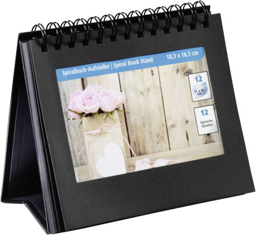 Der Artikel "Spiralbuch-Aufsteller 11x15 für 12 Bilder, schwarz 2470" von der Marke Hama hat die Farbe Schwarz. Das Produkt besteht aus Karton. Es handelt sich bei dem Artikel um eine(n) Aufsteller.