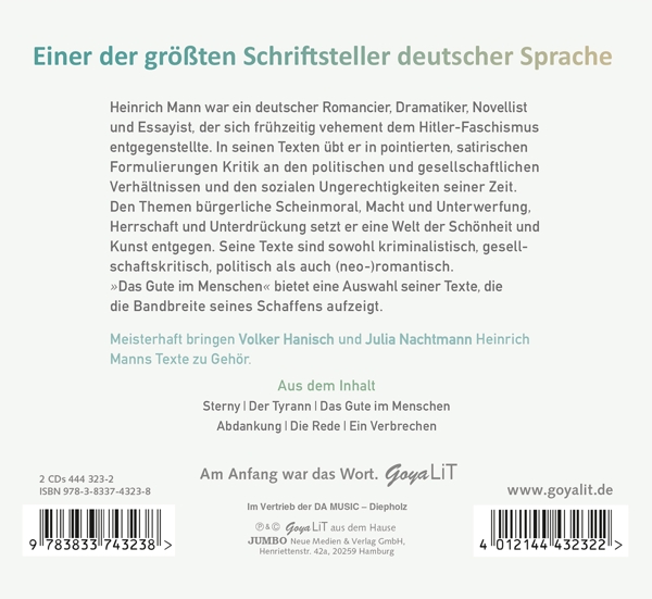 Disc 01 01. Szylowicki, Sonja "Ansage" 02. Hanisch, Volker "Ein Verbrechen I" 03. Hanisch, Volker "Ein Verbrechen II" 04. Hanisch, Volker "Ein Verbrechen III" 05. Nachtmann, Julia "Das Gute Im Menschen" 06. Hanisch, Volker "Abdankung I" 07. Hanisch, Volker "Abdankung II" 08. Hanisch, Volker "Abdankung III" 09. Hanisch, Volker "Abdankung IV" 10. Nachtmann, Julia "Sterny I" 11. Nachtmann, Julia "Sterny II" 12. Nachtmann, Julia "Sterny III" 13. Nachtmann, Julia "Sterny IV" 14. Hanisch, Volker "Drei-Minuten-Roman I"