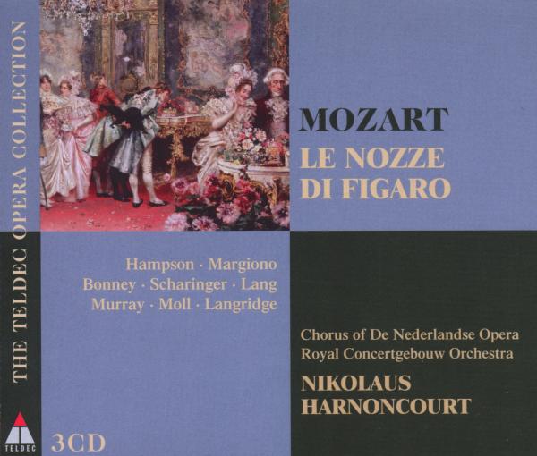 Disc 01 Le nozze di Figaro KV 492 (Figaros Hochzeit, Oper in 4 Akten) (Gesamtaufnahme) 01. Nikolaus Harnoncourt "Sinfonia" Mozart : Le nozze di Figaro : Act 1 "Cinque dieci" [Susanna, Figaro] 02. Barbara Bonney, Anton Scharinger, Nikolaus Harnoncourt & Royal Concertgebouw Orchestra "Cinque... dieci... venti... trenta.... (1. Akt)" Recitativo "Cosa stai misurando" 03. Nikolaus Harnoncourt "Cosa stai misurando, caro il mio Figaretto?" No.2 Duettino "Se a caso madama" 04. Nikolaus Harnoncourt "Se a caso Madama" Recitativo "Or bene 05. Nikolaus Harnoncourt "Or bene" Mozart : Le nozze di Figaro : Act 1 "Se vuol ballare" [Figaro] 06. Anton Scharinger, Nikolaus Harnoncourt & Royal Concertgebouw Orchestra "Se vuol ballare, signor Contino" Recitativo "Ed aspettaste il giorno" 07. Nikolaus Harnoncourt "Ed aspettaste il giorno fissato per le nozze per parlami di questo?" Mozart : Le nozze di Figaro : Act 1 "La vendetta" [Bartolo] 08. Kurt Moll, Nikolaus Harnoncourt & Royal Concertgebouw Orchestra "La vendetta, oh, la vendetta!" Recitativo "Tutto ancoor non ho perso" 09. Nikolaus Harnoncourt "Tutto ancor non ho perso" No.5 Duettino "Via resti servita" 10. Nikolaus Harnoncourt "Via, resti servita, madama brillante" Recitativo "Va' l?, vecchia pedante" 11. Nikolaus Harnoncourt "Va'l?, vecchia pedante" Mozart : Le nozze di Figaro : Act 1 "Non s? pi? cosa son" [Cherubino] 12. Petra Lang, Nikolaus Harnoncourt & Royal Concertgebouw Orchestra "Non so pi? cosa son, cosa faccio" Recitativo "Ah, son perduto!" 13. Nikolaus Harnoncourt "Ah, son perduto! - Susanna, il ciel vi salvi" No.7 Terzetto "Cosa sento!" 14. Nikolaus Harnoncourt "Cosa sento! Tosto andate, e scacciate il seduttor" Recitativo "Basilio, in traccia tosto" 15. Nikolaus Harnoncourt "Basilio, in traccia tosto di Figaro volate" No.8 Coro "Giovan liete" 16. Nikolaus Harnoncourt "Giovani liete, fiori spargete" Recitativo "Cos' ? questo commedia?" 17. Nikolaus Harnoncourt "Cos'? questa commedia?" Mozart : Le nozze di Figaro : Act 1 "Giovani liete" [Chorus] 18. Nikolaus Harnoncourt, Netherlands Opera Chorus & Royal Concertgebouw Orchestra "Giovani liete, fiori spargete" Recitativo "Evviva!" 19. Nikolaus Harnoncourt "Evviva! - Evviva!" Mozart : Le nozze di Figaro : Act 1 "Non pi? andrai" [Figaro] 20. Anton Scharinger, Nikolaus Harnoncourt & Royal Concertgebouw Orchestra "Non pi? andrai" Mozart : Le nozze di Figaro : Act 2 "Porgi amor qualche ristoro" [La Contessa] 21. Charlotte Margiono, Nikolaus Harnoncourt & Royal Concertgebouw Orchestra "Porgi, amor, qualche ristoro al mio duolo (2. Akt)" Recitativo "Vieni, cara Susanna" 22. Nikolaus Harnoncourt "Vieni, cara Susanna, finiscimi l'istoria"