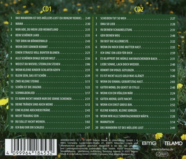 Herausgegeben wird die CD vom Label Telamo, das im deutschsprachigen Raum für seine starke Ausrichtung auf Schlager und populäre Musik bekannt ist. Telamo steht für hochwertige Produktionen, sorgfältig zusammengestellte Editionen und einen respektvollen Umgang mit dem künstlerischen Erbe etablierter Stars. Mit Veröffentlichungen wie dieser Jubiläumsedition positioniert sich das Label als verlässlicher Partner für alle, die Wert auf gut aufbereitete Katalogtitel, stimmige Booklets und eine detailverliebte Präsentation legen. "Die große Jubiläumsedition: 70 Jahre" verbindet damit emotionale Nostalgie mit professionellen Produktionsstandards - ein Muss für Sammler und ein Genuss für alle, die zeitlose Schlager lieben. |
