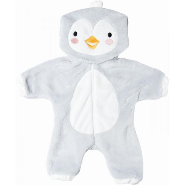 Beschreibung: Im Puppen-Einteiler ''Baby-Pinguin'' sehen Puppen nicht nur besonders niedlich aus, sondern sind darin auch super kuschelig eingepackt. Der weiche Plüsch-Overall ist von innen wie außen flauschig und hält die Puppe bei Wind und Wetter warm. Das fröhliche Pinguin-Gesicht auf der Kapuze sorgt auch bei tristem Wetter für allerbeste Laune. Durch seinen leichtgängigen Reißverschluss und die elastischen Bündchen an Ärmeln und Beinen lässt sich der Overall kinderleicht an- und ausziehen. Der Einteiler passt den meisten marktgängigen Puppen der Größe 35-45 cm. Er ist auch in einer weiteren Ausführung für Puppengröße 28-35 cm (Art.-Nr. 1198) erhältlich. Der Artikel wird auf einem Holzkleiderbügel geliefert