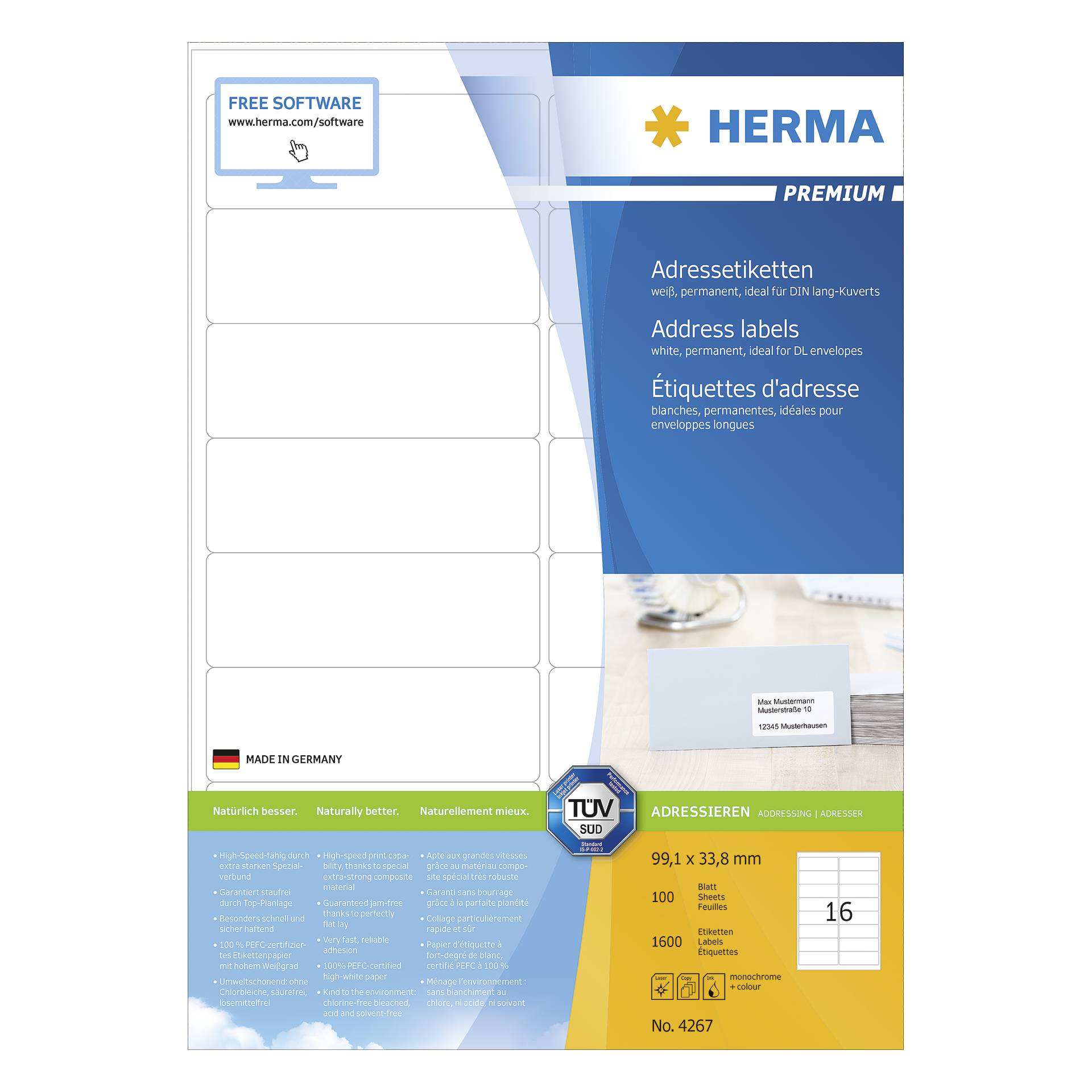 "Adressetiketten A4 weiß 99,1x33,8 mm Papier 1600 St." von Herma aus der Kategorie Drucker- & Kopierpapier hat die Farbe Weiß. Das Produkt besteht aus Papier und hat ein Gesamtgewicht von 1,02 kg. Der Artikel nutzt Laser/Inkjet als Druckmethode. Es handelt sich bei dem Produkt um eine (n) Adress-Etiketten / Versand-Etike.