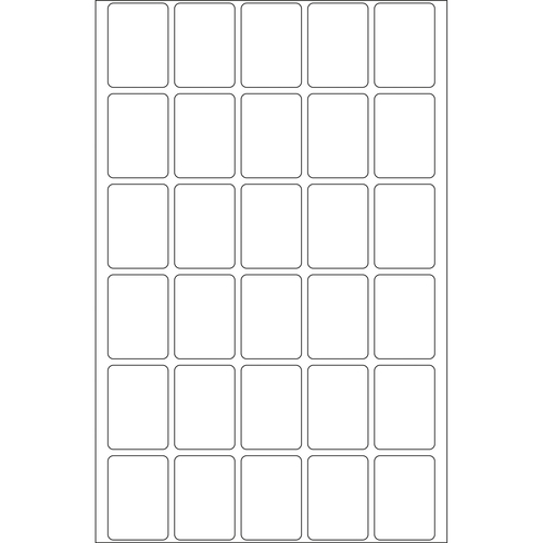 Details: Media Medientyp Selbstklebende Etiketten Mediengrößen 19 x 27 mm Drucktechnologie Tintenstrahl, Laser Medienfarbe Weiß Anz. Karten/Etiketten pro Blatt/Rolle 30 Qty of Media with Cards 32 Bogen Enthaltene Menge 960 Stck. Merkmale Ablösbar klebend
