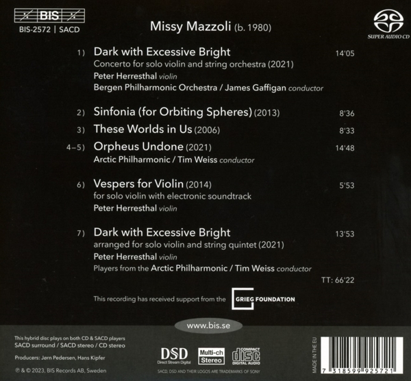 01. Herresthal, Peter "Dark with excessive bright (Konzert für Violine und Streichorchester) (2021)" 02. Weiss, Tim "Sinfonia (for orbiting spheres) (2013)" 03. Weiss, Tim "These worlds in us (2006)" Orpheus undone (2021) 04. Weiss, Tim "1. Behold the machine, o Death" 05. Weiss, Tim "2. We of violence, we endure" 06. Herresthal, Peter "Vespers for violin (für Violine solo und Elektronik) (2014)" 07. Mehus, Oyvind "Dark with excessive bright (bearb. für Violine und Streichquartett) (2021)"