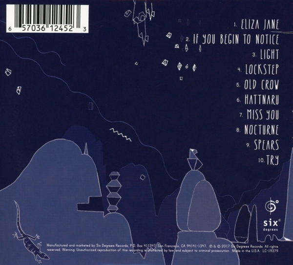 01. "Eliza Jane" 02. "If you begin to notice" 03. "Light" 04. "Lockstep" 05. "Old crow" 06. "Hattnaru" 07. "Miss you" 08. "Nocturne" 09. "Spears" 10. "Try"