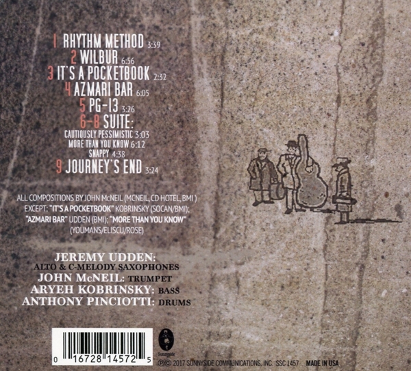 01. "Rhythm method" 02. "Wilbur" 03. "It's a pocketbook" 04. "Azmari bar" 05. "Pg-13" 06. "Suite: Cautiously pessimistic" 07. "Suite: More than you know" 08. "Suite: Snappy" 09. "Journey's end"