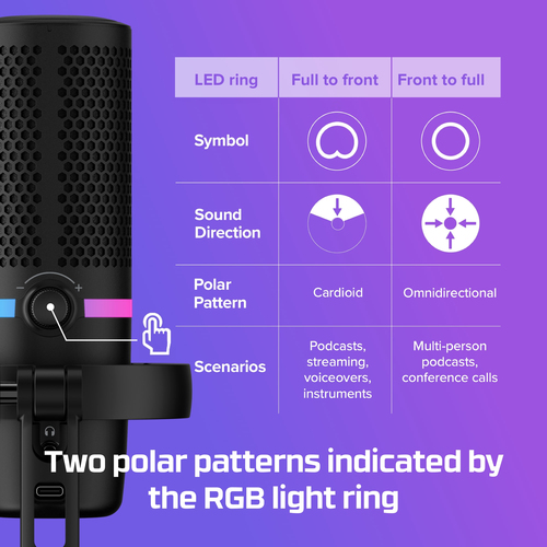 | Beschreibung: | Mit elegantem Design, flacher Mikrofonspinne und geschmackvollem RGB-Lichtring ist das HyperX DuoCast ein USB-Mikrofon mit vollem Funktionsumfang für Gaming, Arbeit und Content Creation. Es bietet die gleichen beliebten Funktionen wie die anderen HyperX Mikrofone, z. B. Stummschaltung durch Antippen und die auffällige LED-Anzeige der Mikrofonstummschaltung, bringt aber auch seine ganz eigenen Stilmerkmale mit. Die flache Mikrofonspinne ergänzt die elegante, minimalistische Ästhetik, absorbiert dabei aber auch Vibrationen und nimmt weniger Platz ein. Die mitgelieferte Montagehalterung ist mit den meisten Halterungen kompatibel. Darüber hinaus ist das DuoCast auch mit PC, PS5 , PS4 und Mac kompatibel. Passe den RGB-Lichtring mithilfe der HyperX NGENUITY Software an deinen ganz persönlichen Stil an.rnrn Hauptmerkmale rn rn Mikrofon rn Typ Mikrofon für Spielkonsole rn Mikrofon-Eingangsimpedanz 32 Ohm rn Bit-Rate 24 Bit rn Samplerate 96 kHz rn rn Anschlüsse und SchnittstellenDas HyperX DuoCast Black ist ein vielseitiges USB-Kondensatormikrofon für Streamer, Podcaster und Content Creator mit professionellen Ansprüchen an die Audioqualität. Das elegante schwarze Design wird durch individuell einstellbare RGB-Beleuchtung ergänzt und bietet sowohl Nieren- als auch Kugelcharakteristik für verschiedene Aufnahmesituationen. Mit einer hochauflösenden Abtastrate von 24 Bit/96 kHz liefert das Mikrofon eine außergewöhnlich klare Klangwiedergabe; der integrierte Popschutz reduziert störende Plosivlaute effektiv für saubere Sprachaufnahmen. Ein berührungsempfindlicher Mute-Button sowie Gain-Regler ermöglichen eine einfache Bedienung während Live-Sessions. Das Gerät ist kompatibel mit PC, Mac sowie PlayStation 4 & 5 und funktioniert ohne zusätzliche Treiberinstallation direkt nach dem Anschließen (Plug-and-Play). Der Hersteller HyperX steht weltweit für hochwertige Gaming-Produkte und engagiert sich zunehmend im Bereich Nachhaltigkeit ? etwa durch recycelbare Verpackungen und energieeffiziente Produktionsprozesse. Mit dem Kauf des DuoCast Black leisten Kunden nicht nur einen Beitrag zu ihrer kreativen Entwicklung sondern unterstützen gleichzeitig umweltfreundliche Initiativen. |  | | Herstellernummer: |