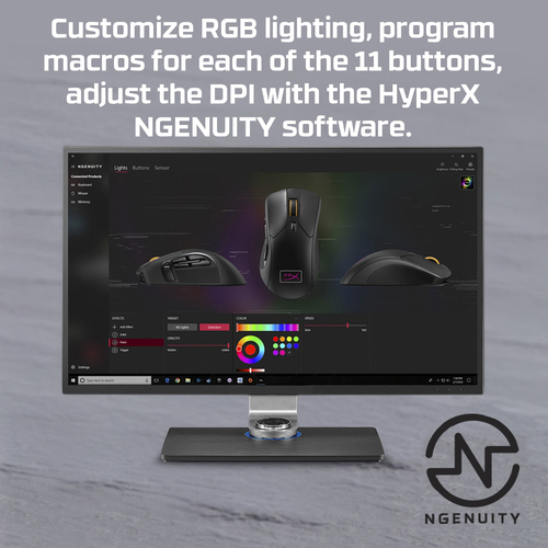 https://row.hyperx.com/pages/limited-warranty-statement | Maus | | Zweck | Gaming | | Geräteschnittstelle | USB Typ-A | | Bewegungerfassungs Technologie | Optisch | | Bewegung Auflösung | 16000 DPI | | Scroll Typ | Rad | | Knopfanzahl | 11 | | Tastenhaltbarkeit (Millionen Klicks) | 20 | | Maus-Tracking-Geschwindigkeit | 450 ips | | Beschleunigung (Max.) | 40 G | Logistikdaten | | Warentarifnummer (HS) | 84716070 | Gewicht und Abmessungen | | Breite | 128 mm | | Tiefe | 71 mm | | Höhe | 42 mm | | Gewicht | 95 g | Ergonomie | | Kabellänge | 1,8 m | Energie | | Energiequelle | Kabel | Design | | Formfaktor | Beidhändig | | Produktfarbe | Schwarz |