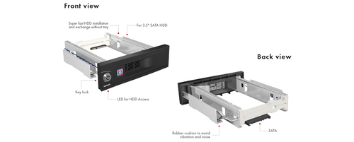 | Allgemeine Daten | | Gewicht in kg | 0,3 | | Tiefe in mm | 149 | | Höhe in mm | 42 | | Breite in mm | 184 | | Gehäuse | Edelstahl / Kunststoff | | Farbe | schwarz | | Anschlussarten | | Netzwerk RJ 45 | Nein | | eSATA | Nein | | Schnittstelle | | SAS | Nein | | SATA | Ja | | M.2 (NVMe / PCIe) | Nein | | Ausstattung(en) | | RAID | Nein | | Typ(en) | | Speichersystem | Direct Attached Storage (DAS) | | Passende Schachtgröße für Rahmen | 1x 5,25" | | Aufnahme möglicher Speichermedien (Anzahl) | 1 | | Kompatible HDD | 3,5" | | Typ(en) | Wechselrahmen |