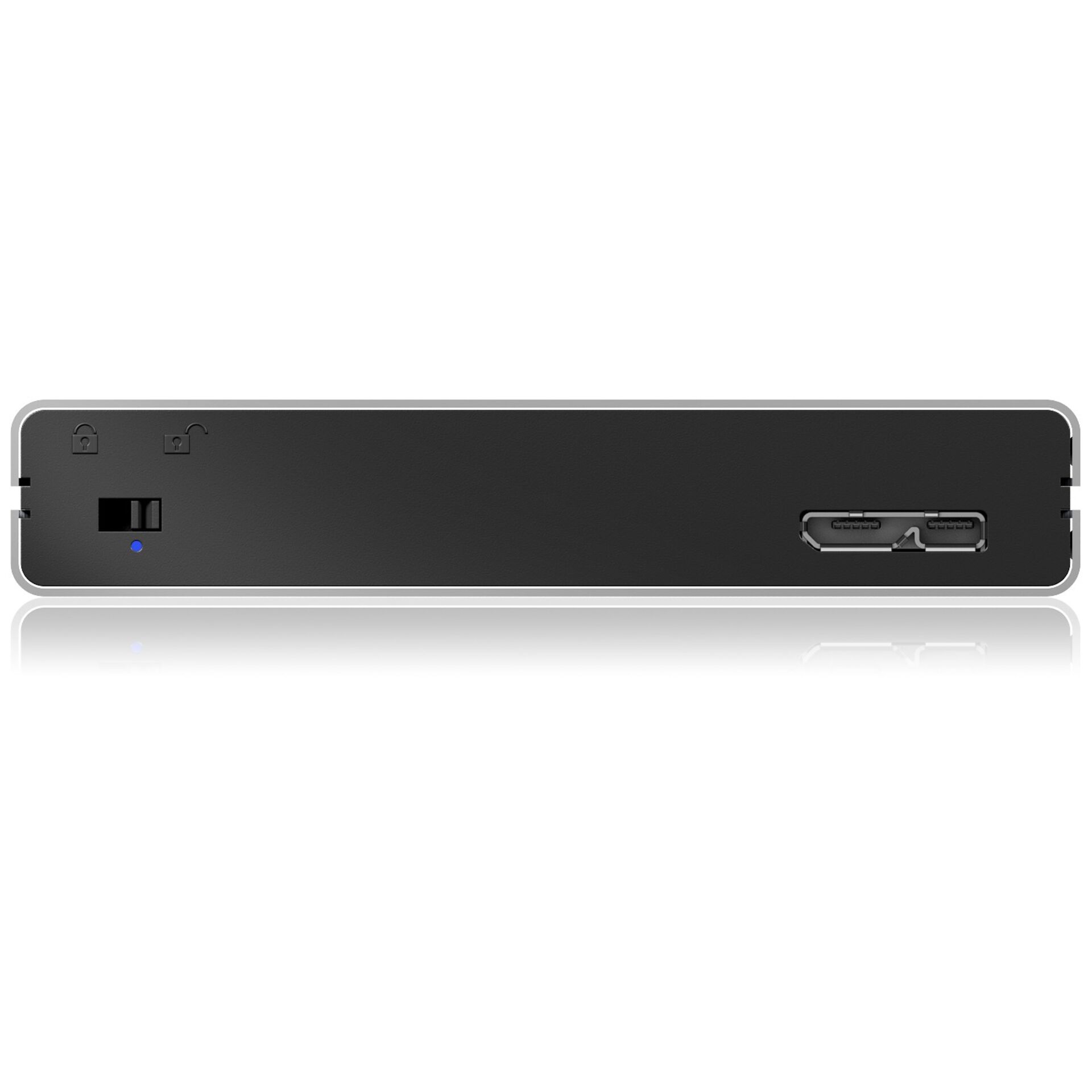 Der Schreibschutzschalter an der Rückseite des Gehäuses ist ein neues Feature und schützt vor dem versehentlichen Löschen von Daten. Er funktioniert ähnlich wie der Schreibschutzschalter einer SD-Karte.
