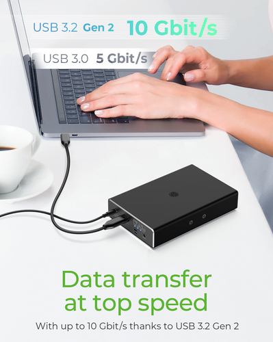 Laufwerke und die Datenübertragungsraten mit RAID 0 an die Grenzen. Nutzen Sie jedes verbaute Laufwerk separat im SINGLE-Modus oder den gesamten verfügbaren Speicherplatz im LARGE-Modus.Mit USB 3.2 Gen 2 erleben Sie Datentransfer mit bis zu 10 Gbit/s und verabschieden sich von Wartezeiten. Daten werden in Sekunden auf die Laufwerke übertragen. Damit das IB-RD2253-C31 auch zu Ihrer
