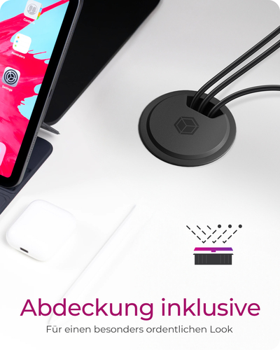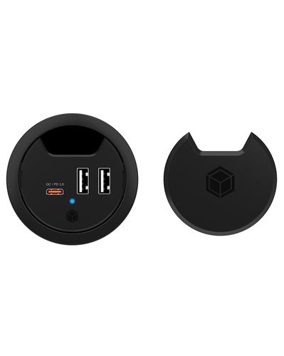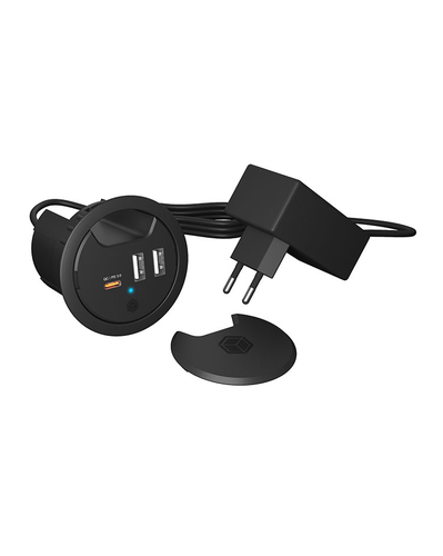 Direkt am ArbeitsplatzGenießen Sie die Freiheit, Ihre mobilen Geräte wie Smartphones oder Tablets nicht mehr an der Steckdose, sondern direkt auf dem Schreibtisch zu laden. Einfach das Ladekabel mit einem der leistungsstarken USB-Ladeports verbinden und schon erreicht Ihr Gerät Strom mit bis zu 27 Watt Leistung.Volle Power für 3 GeräteAusgestattet mit einem USB Type-C® PD- und zwei USB Type A (BC)-Anschlüssen, erleben hohe Ladegeschwindigkeit für bis zu drei Geräte gleichzeitig. Ihnen stehen bis zu 27 Watt rasante Ladeleistung an dem USB Type-C®-Port und bis zu 10 Watt an den Type A-Ports zur Verfügung.Einfache InstallationDer Tischladehub ist für Kabeldurchführungen und Bohrungen mit 60 mm Durchmesser vorgesehen. Für die Installation wird kein zusätzliches Werkzeug benötigt. Für größere Kabelkanäle mit bis zu 80 mm Durchmesser ist der IB-HUB1407 mit dem Adapterring IB-HUBA001 kompatibel. Hauptmerkmale Leistungen Aufladetyp Drinnen Aufladekompatibilität Universal Energiequelle AC Anzahl