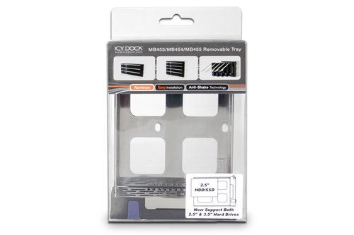 | Beschreibung: | schwarz2,5" internSingle Bay: MB876SK-B, Multi Bay: MB153SP-B, MB154SP-B, MB155SP-B, MB453SPF-B, MB454SPF-B, MB455SPF-BLaufwerksrahmenKurzinfo: Cremax ICY Dock MB453TRAY-2B - Träger für Speicherlaufwerk (Caddy) mit hotswapfähiger Wechselrahmen - 2.5" / 3.5" gemeinsam genutzt Gruppe Speicheradapter Hersteller ICY DOCK Hersteller Art. Nr. MB453TRAY-2B EAN/UPC Produktbeschreibung: Cremax ICY Dock MB453TRAY-2B - Träger für Speicherlaufwerk (Caddy) Gerätetyp Träger für Speicherlaufwerk (Caddy) Erweiterungseinschübe 1 x intern - 2.5" / 3.5" gemeinsam genutzt (6,4 cm/8,9 cm gemeinsam genutzt) Kompatibles Schaltfeld 1 5.25" (13.3 cm) Kompatibilität mit Festplattenlaufwerk-Formfaktor 2.5" / 3.5" gemeinsam genutzt Besonderheiten Hotswapfähiger Wechselrahmen Produktmaterial Rostfreier Stahl, ABS-Kunststoff Abmessungen (Breite x Tiefe x Höhe) 11.24 cm x 15.7 cm x 2.66 cm Gewicht 136.1 g Ausführliche Details Allgemein Gerätetyp Träger für Speicherlaufwerk (Caddy) Kompatibilität mit Festplattenlaufwerk-Formfaktor 2.5" / 3.5" gemeinsam genutzt Produktmaterial Rostfreier Stahl, ABS-Kunststoff Besonderheiten Hotswapfähiger WechselrahmenWeee-Nr.: 26989478Der Festplattenträger von IcyDock für die Serien MB15X/MB45X/MB876 ist eine robuste und vielseitige Lösung zur sicheren Aufnahme von 3,5"- oder 2,5"-SATA- und SAS-Festplatten in kompatiblen Gehäusen oder Racksystemen. Hergestellt vom renommierten Hersteller Icy Dock ? einem weltweit führenden Anbieter im Bereich Datenspeicherlösungen ? ermöglicht dieser Träger dank werkzeugloser Montage sowie hochwertiger Materialien wie Aluminiumlegierung und ABS-Kunststoff einen schnellen Ein- und Ausbau der Laufwerke bei gleichzeitig hoher Langlebigkeit und Stabilität. Hervorragende Wärmeableitung sorgt auch unter starker Belastung für optimale Performance; integrierte Antivibrationsmechanismen schützen empfindliche Hardware während des Betriebs oder Transports zuverlässig vor Erschütterungen. Der Festplattenträger eignet sich ideal für IT-Profis sowie Systemintegratoren und Enthusiasten mit großen Speicherarrays oder Hot-Swap-Anforderungen ? Wartungsarbeiten werden damit erheblich erleichtert.