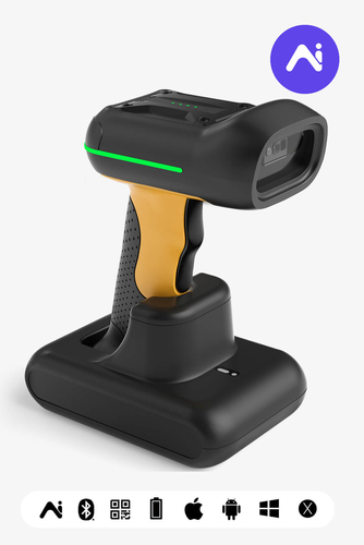 Verpackungsdaten | | Ladestation | Ja | Scannen | | Typ(en) | Tragbares Barcodelesegerät | | Scanner-Typ | 1D/2D | | Sensor-Typ | CMOS | | Lineare (1D) Barcodes unterstützt | Codabar, Code 11, Code 128, Code 39 (ASCII), Code 93, EAN-13, EAN-8, GS1 DataBar, GS1 DataBar Expanded, GS1 Databar Limited, GS1-128 (UCC/EAN-128), IATA, ISBN, ISSN, Industrial 2 of 5, Interleaved 2 of 5, MSI, Matrix 2 of 5, Standard 2 of 5, UPC-A, UPC-E | | 2D (Matrix & gestapelte) Barcodes unterstützt | Aztec Code, Datenmatrix, PDF417, QR Code | | Auslösemodus | Auto-Induktion, Manuell | | Optische Sensorauflösung (B x H) | 640 x 480 Pixel | | Neigungslesewinkel | 55 - 55 ° | | Maximum scanweite | 40 cm | | Schärfentiefebereich | 30 cm | Leistungen | | Produktfarbe | Schwarz, Gelb | | Gehäusematerial | Acrylnitril-Butadien-Styrol (ABS), Polycarbonat (PC), Thermoplastisches Urethan (TPU) | | Internationale Schutzart (IP-Code) | IP67 | | Schutzfunktion | Tropfsicher, Staubgeschützt, Wasserdicht | | LED-Anzeigen | Ja | | Alarm | Ja | | Vibrationsfunktion | Ja | Gewicht und Abmessungen | | Gewicht | 614 g | | Breite | 150,3 mm | | Tiefe | 100,4 mm | | Höhe | 185,3 mm | Energie | | Energiequelle | Akku, USB | | Akku-/Batteriekapazität | 2600 mAh | | Eingangsspannung | 5 V | Betriebsbedingungen | | Betriebstemperatur | 0 - 50 °C | Anschlüsse und Schnittstellen | | Übertragungstechnik | Verkabelt & Kabellos | | Standard-Schnittstellen | USB | | Bluetooth | Ja |