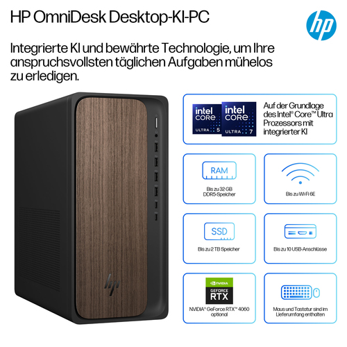 HP OmniDesk AI PC M03-0475ng Core Ultra 7 265 16GB/1TB SSD Windows 11 Dark Wood (BX8C4EA#ABD)